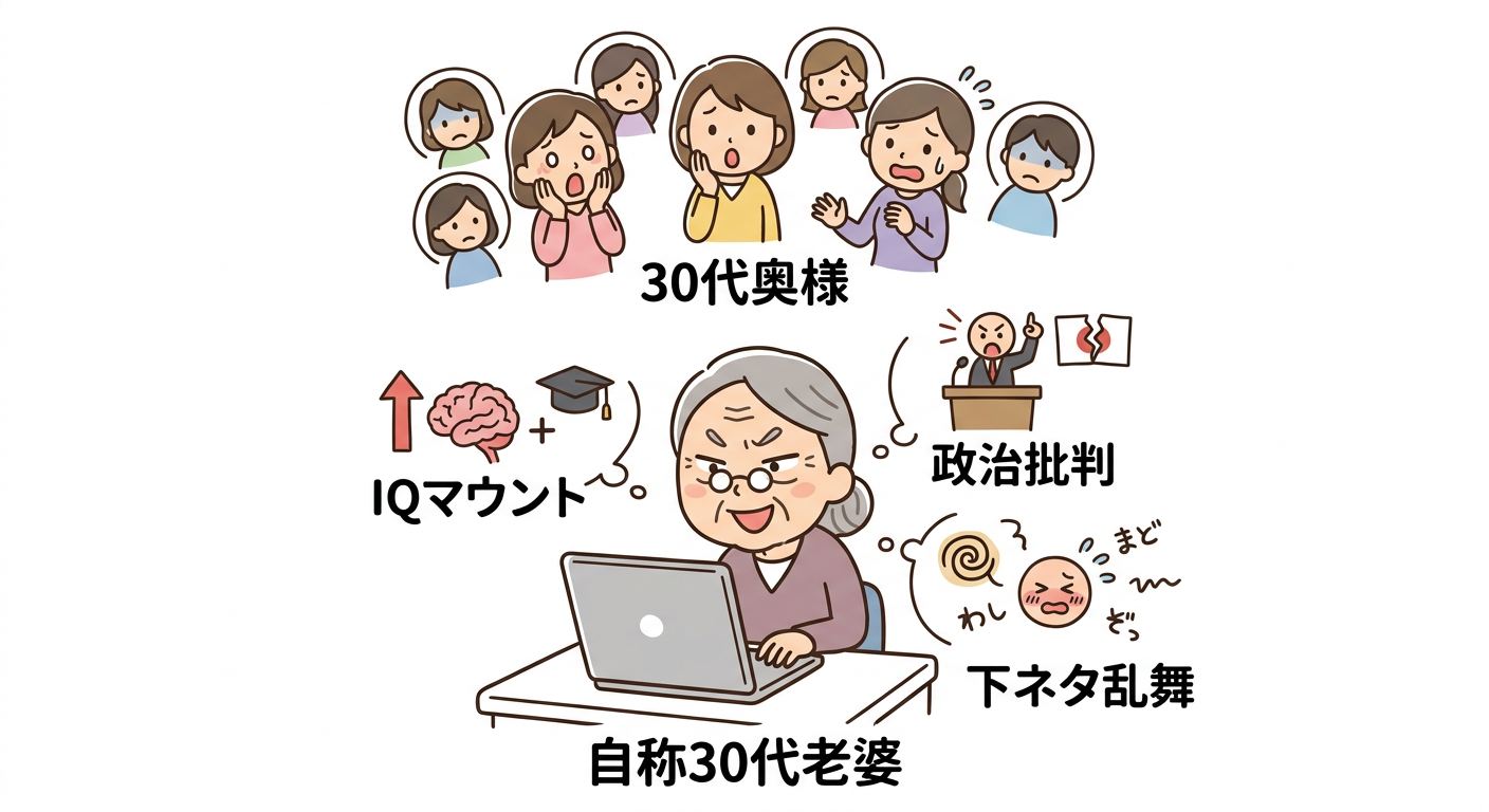 【悲報】スレに常駐する「自称30代老婆」の正体とヤバい生態が暴露されるwww