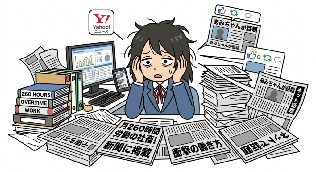 【衝撃】月260時間労働(サビ残抜き)の社畜「あみちゃん」が新聞&Yahoo!ニュースに載った結果www